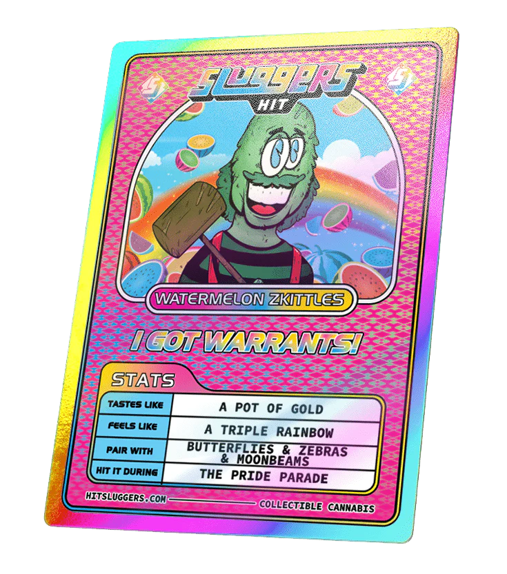 Triple infused joints and memorabilia; each juiced* pack comes with a signature tin, a collectable card, 5 joints, and signature Sluggers wax paper.